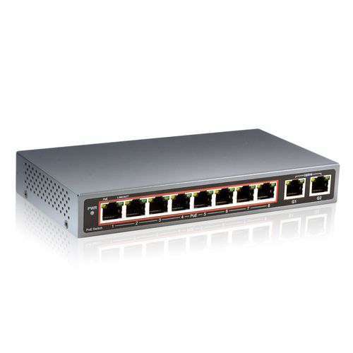 2개의 업링크 포트 벽면부착 브라켓 기본제공 10/100M 8포트+2포트 Gbe Uplink POE스위치허브 NEXT-POE608F