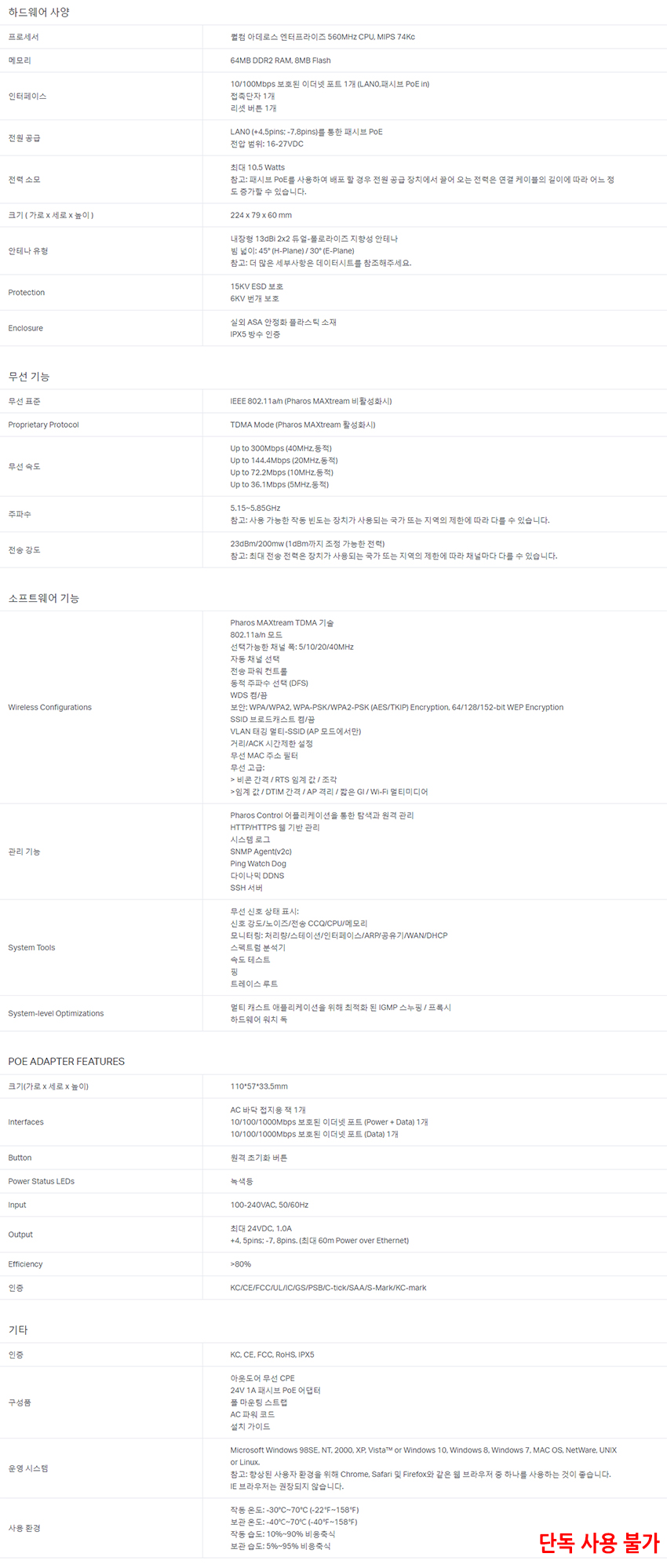 24V 0.5A 패시브 POE 어댑터 포함되어 있습니다.