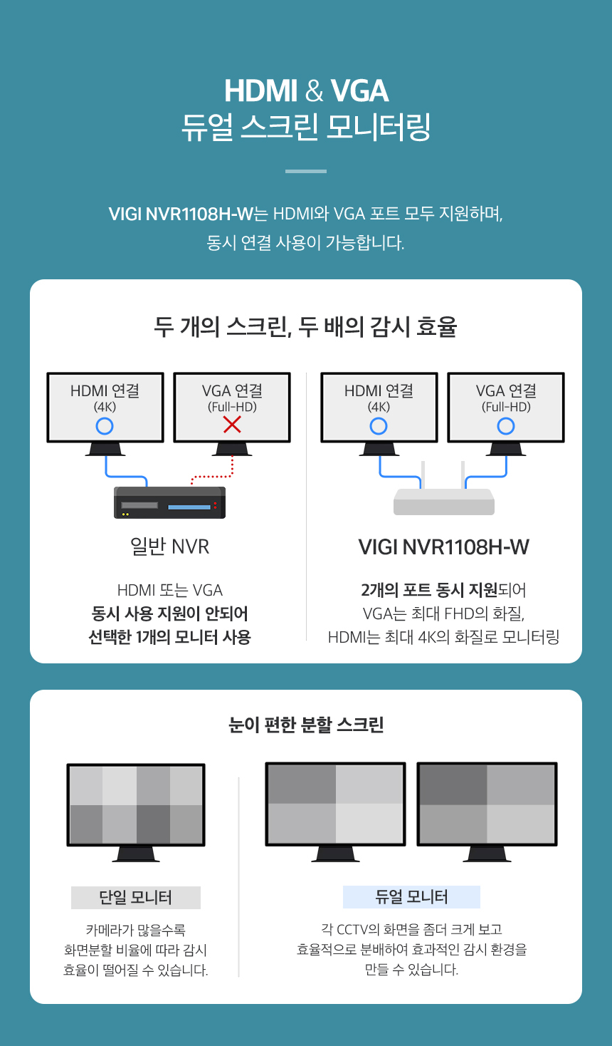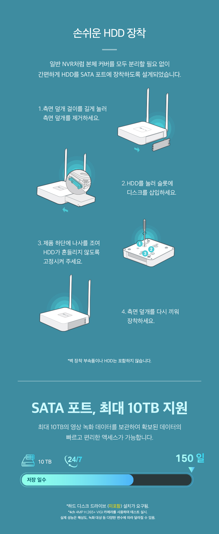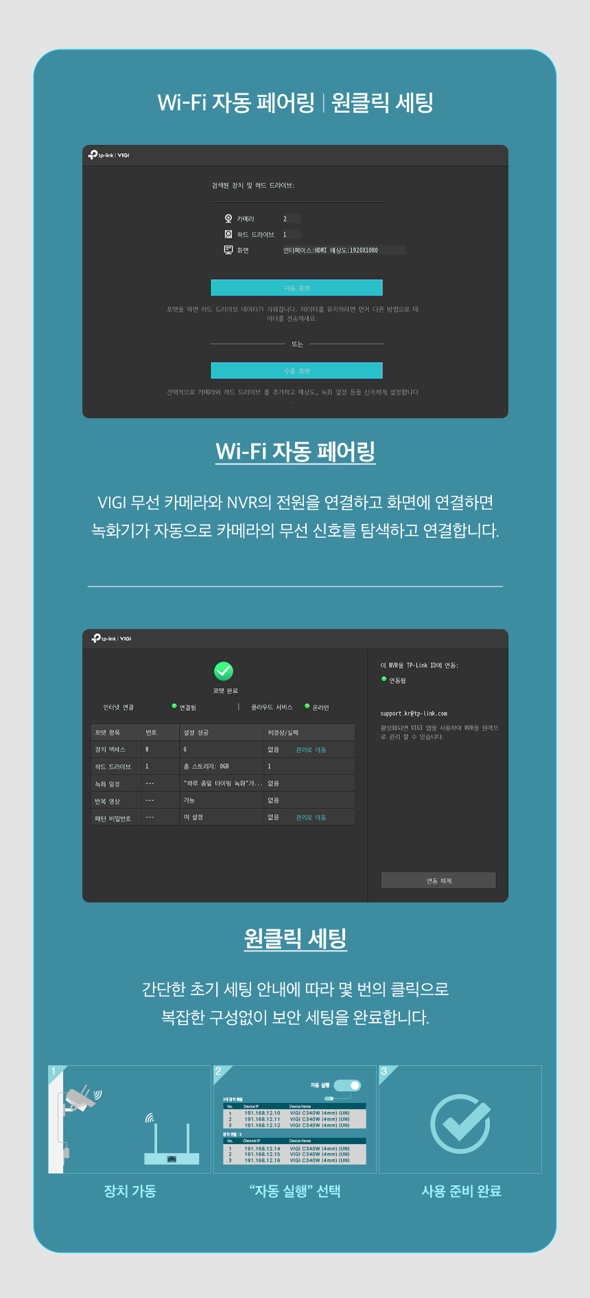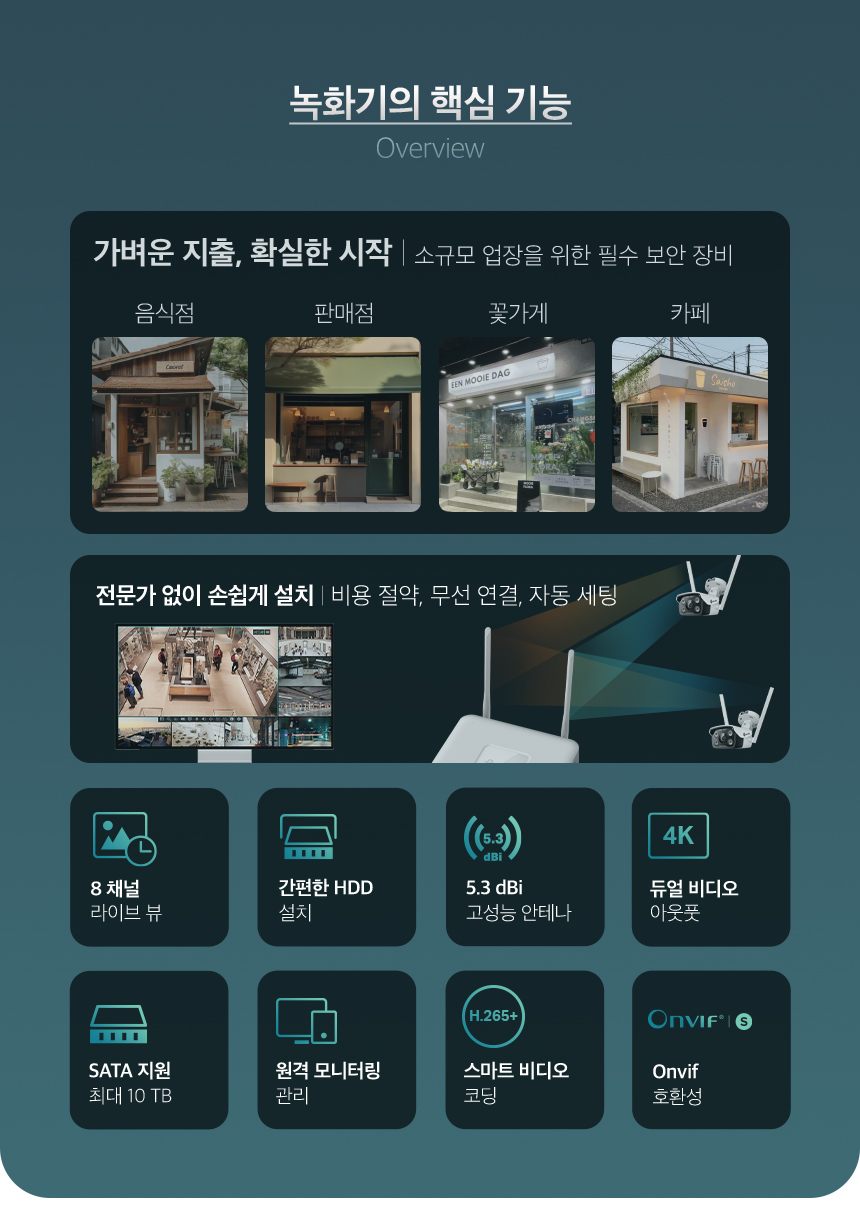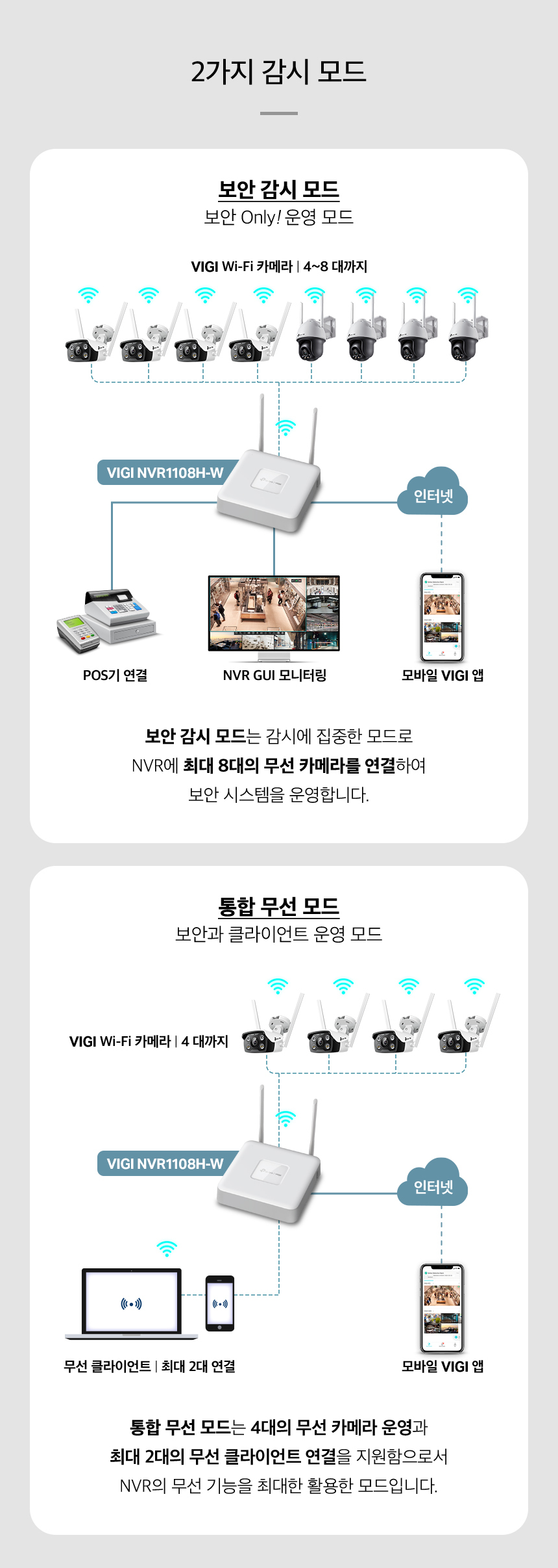 VIGI 8채널 비디오 CCTV녹화기 카메라2대 4포트POE허브 NVR1