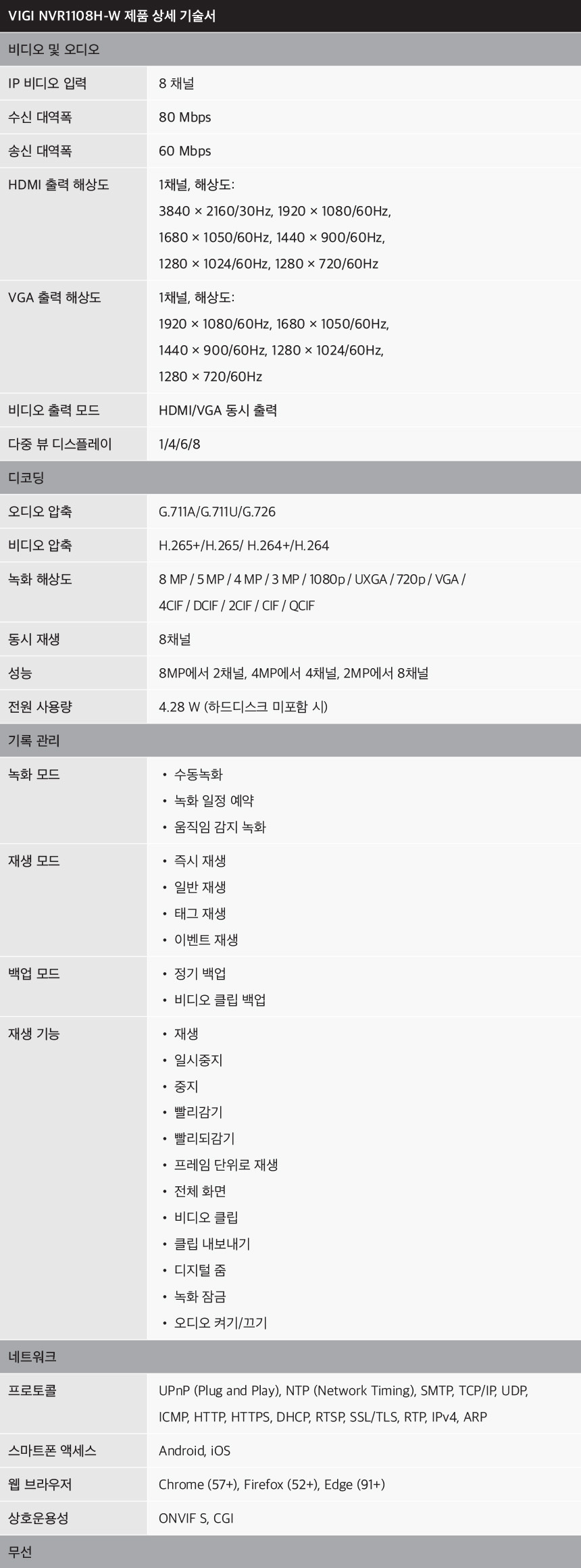 VIGI NVR1108H-W 티피링크 네트워크 비디오CCTV 녹화기 NVR 8채널 [상품번호: 12246321]