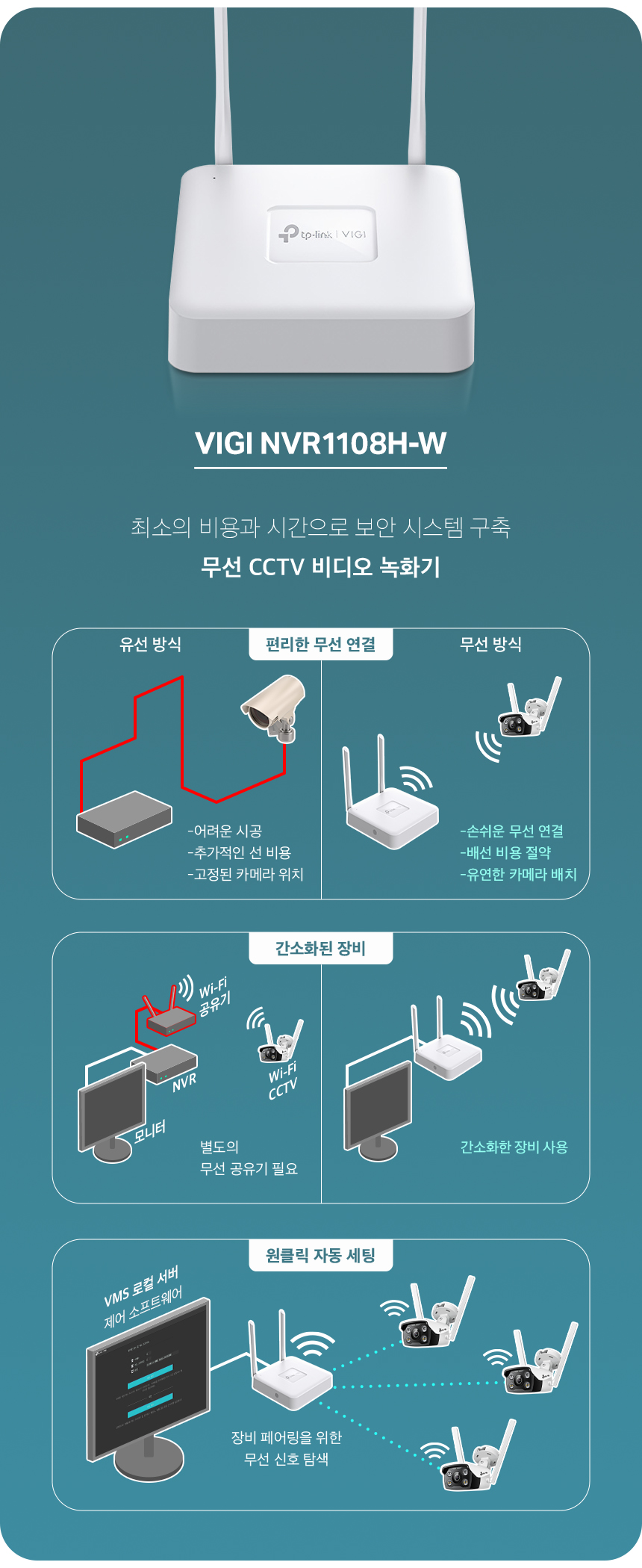 > VIGI NVR1108H-W 티피링크 네트워크 비디오CCTV 녹화기 NVR 8채널