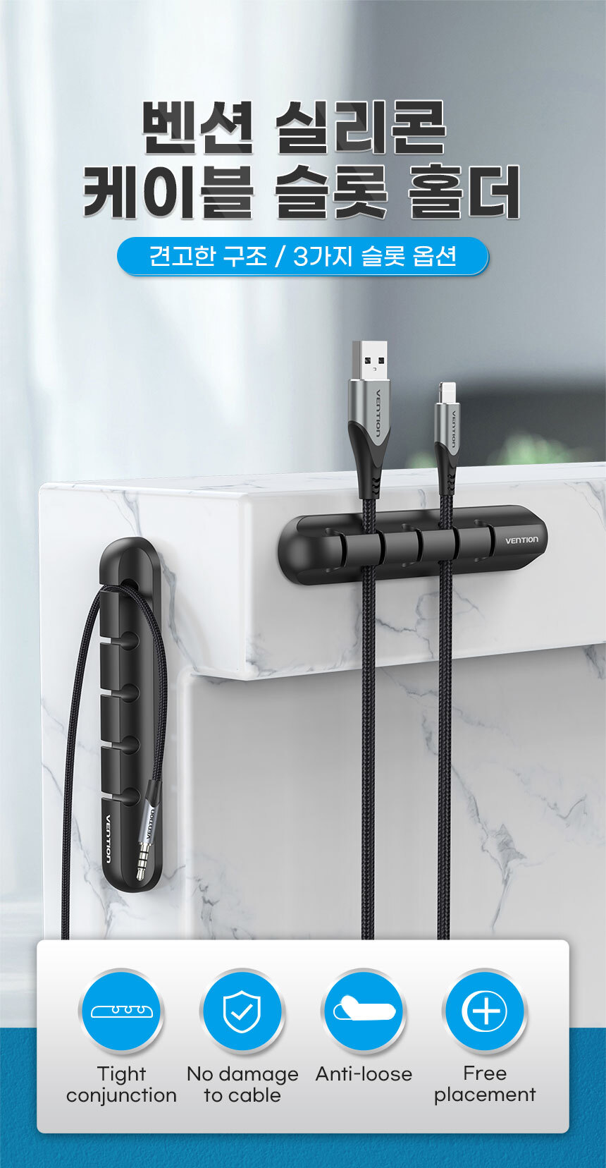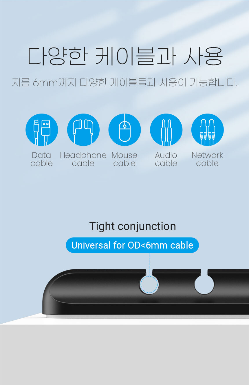 > 6mm까지 다양한 케이블들과 사용이 가능합니다 실리콘 케이블홀더 5구 2개 KBRB0-2
