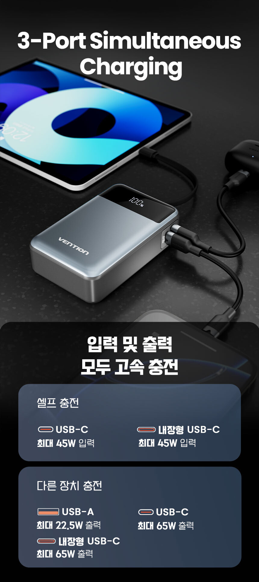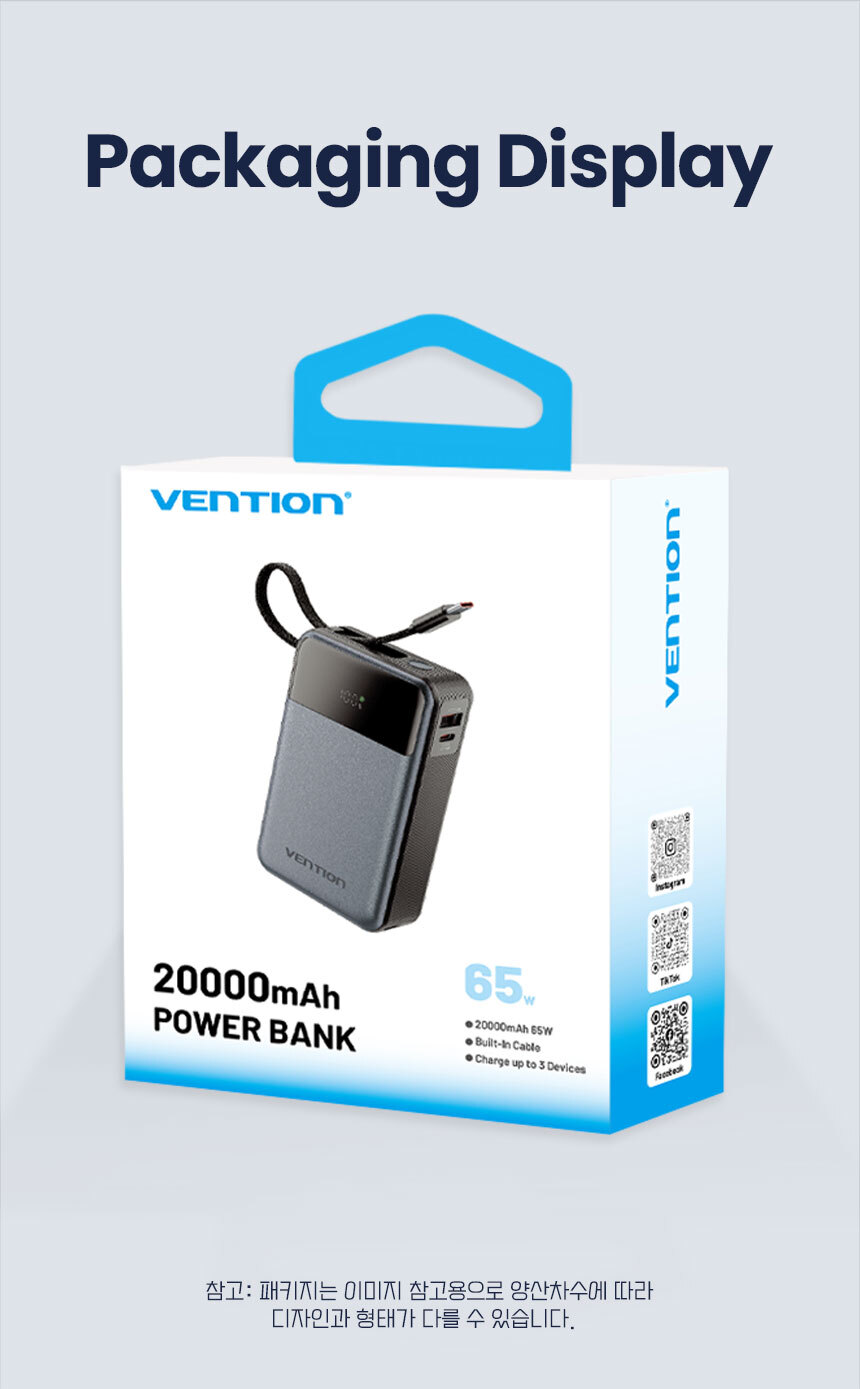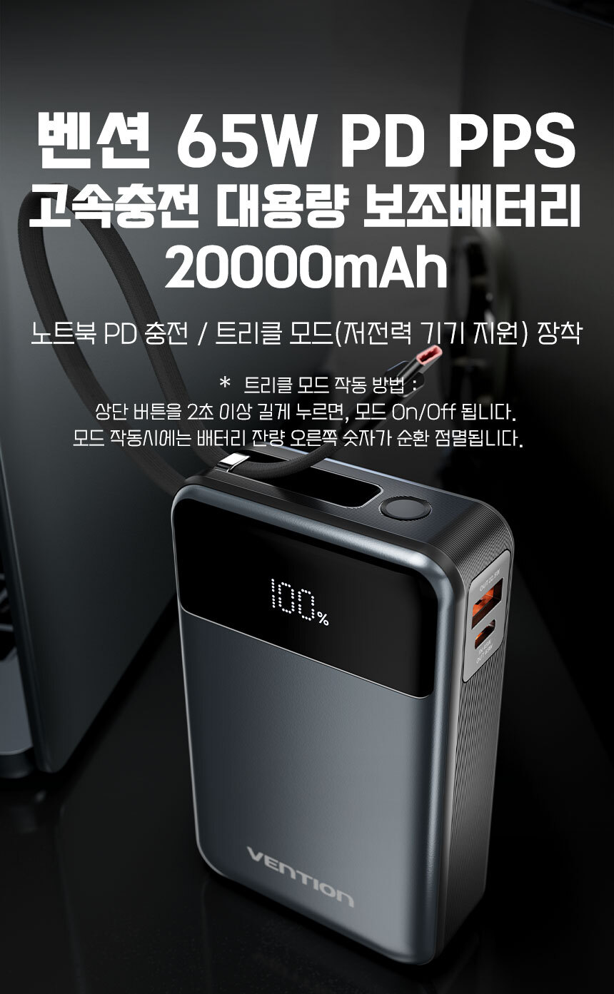 > 배터리안전을 위해 5V 규격으로 출력을 지원 65W PD PPS 고속충전 대용량 보조배터리 20000mAh FHYB0-KR