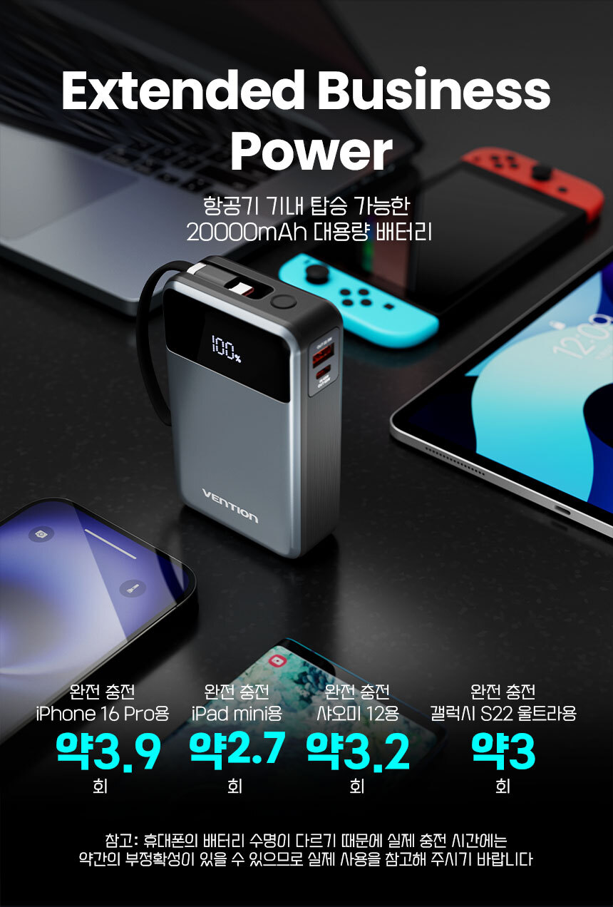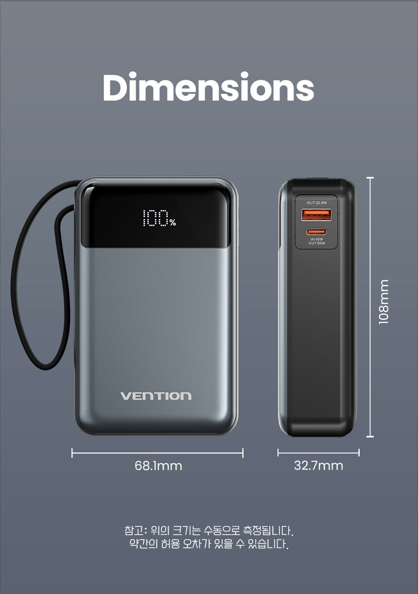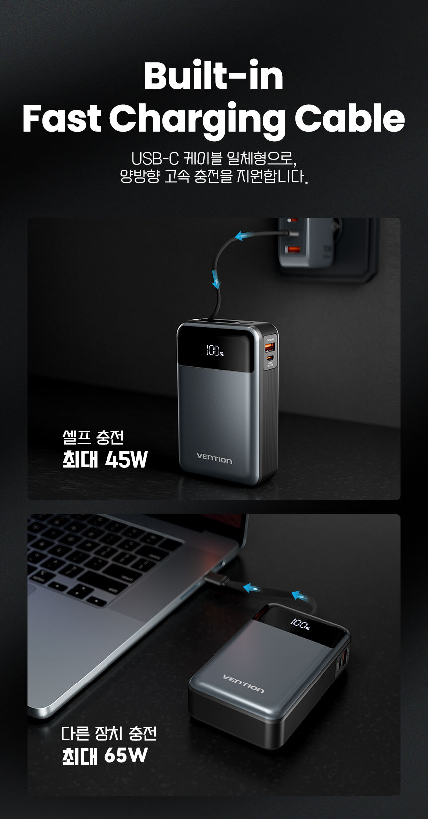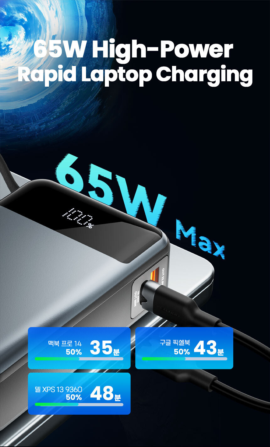 > 배터리안전을 위해 5V 규격으로 출력을 지원 65W PD PPS 고속충전 대용량 보조배터리 20000mAh FHYB0-KR
