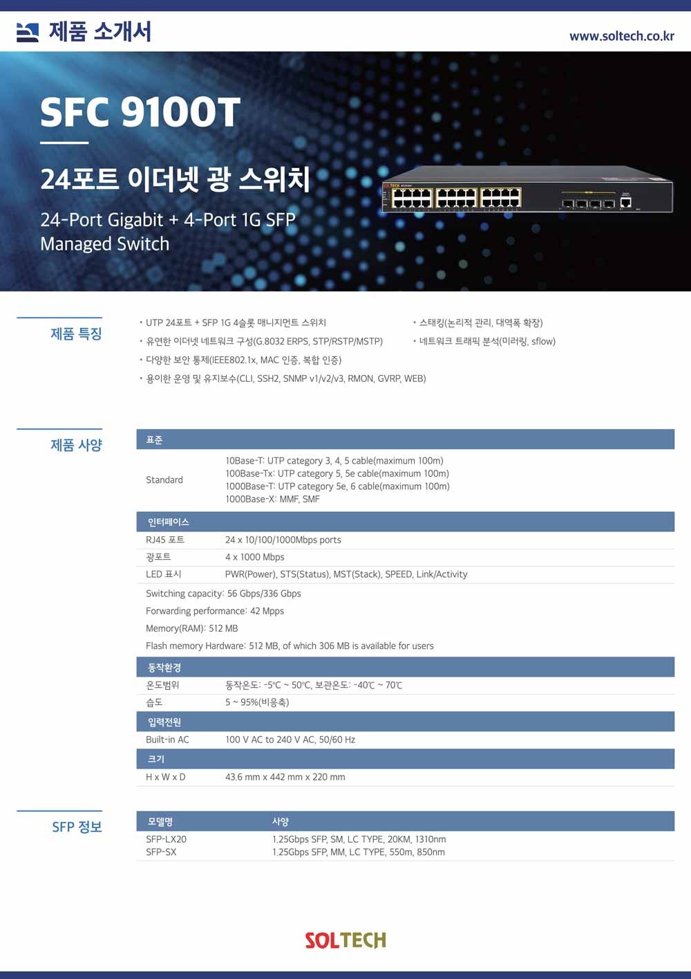 > SFC9100T 스위칭허브 솔텍 기가24포트+기가 1G SFP4 슬롯 L3스위치