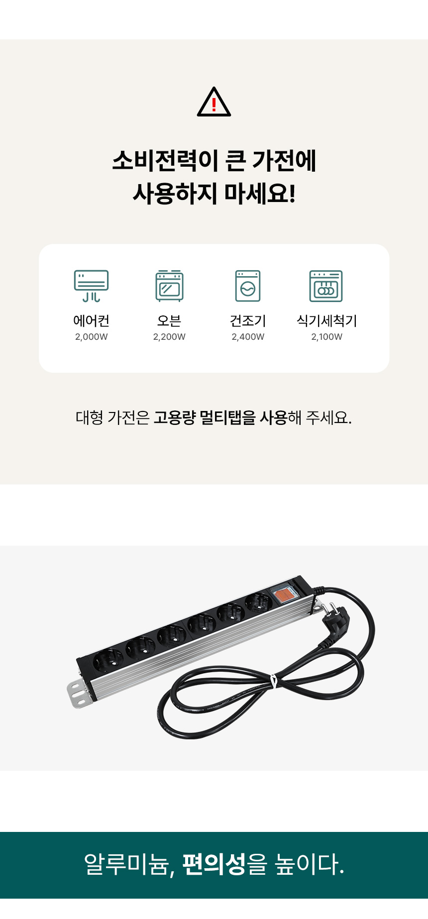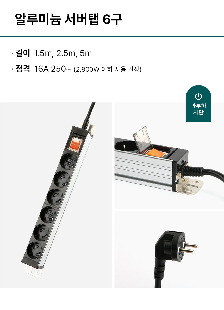 14구 2.5M HDSVAL-1425 현대일렉트릭 통합 절전 스위치 국산 알루미늄 멀티탭 국산 프리미엄 하이탭 [상품번호: 1716]