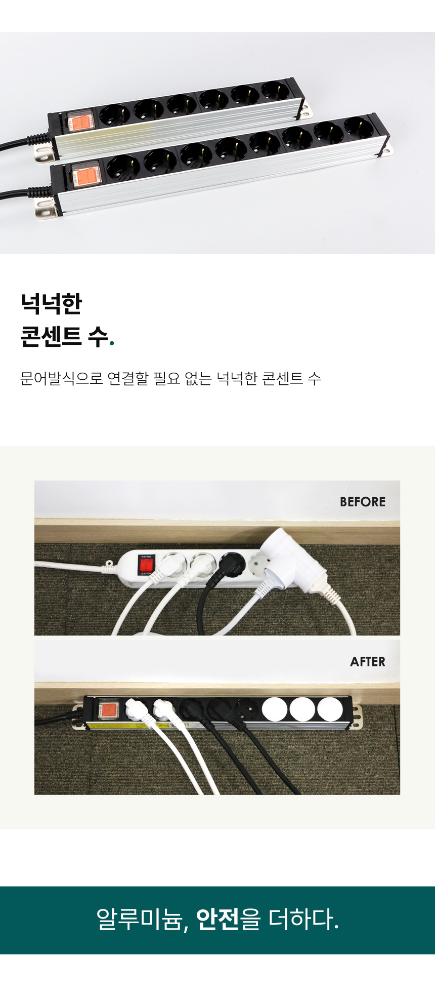 > 14구 2.5M HDSVAL-1425 현대일렉트릭 통합 절전 스위치 국산 알루미늄 멀티탭 국산 프리미엄 하이탭