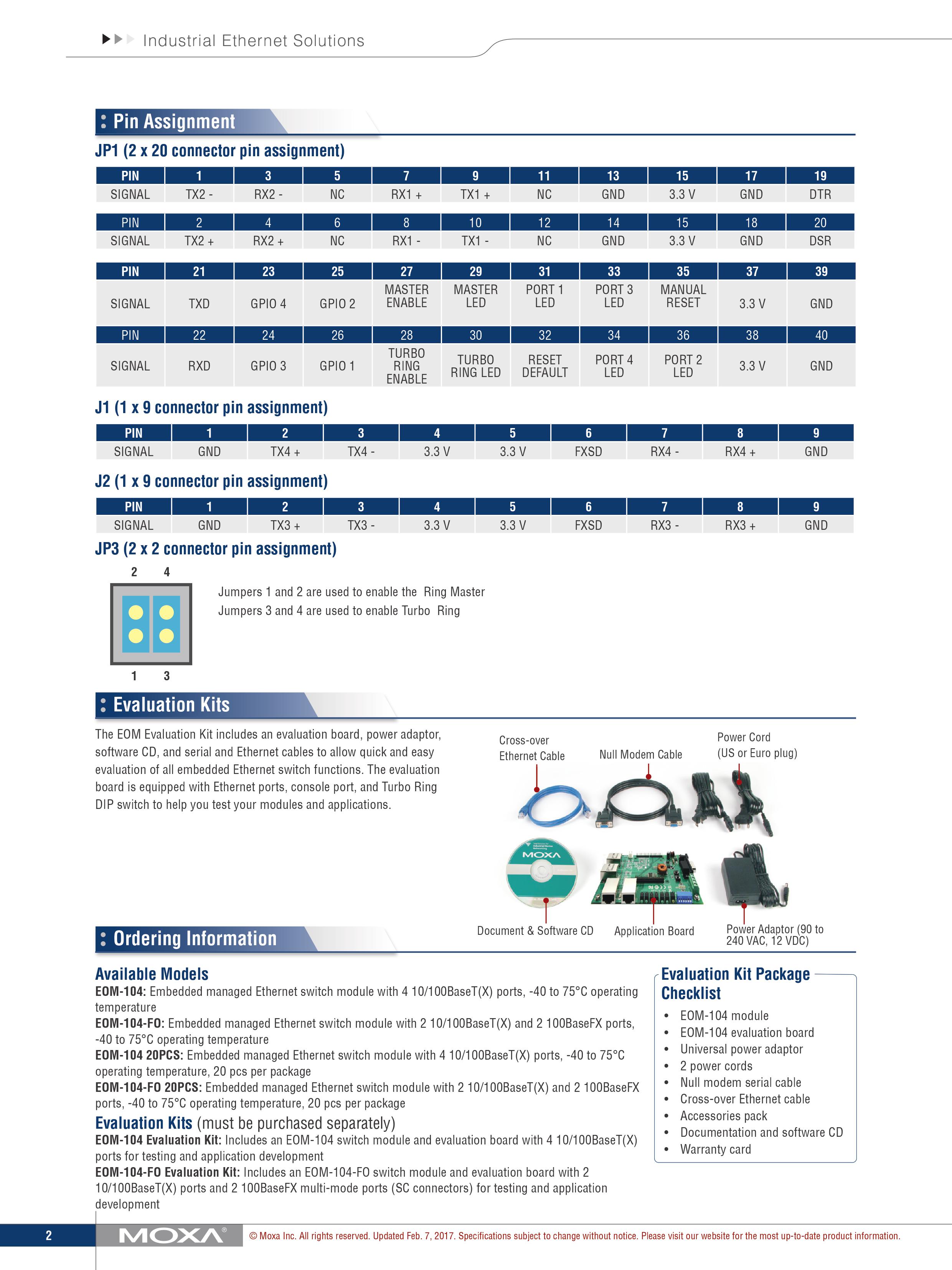 > EOM-104 Evaluation Kit / MOXA EOM-104 Evaluation Kit 4-port embedded managed Ethernet switch modules