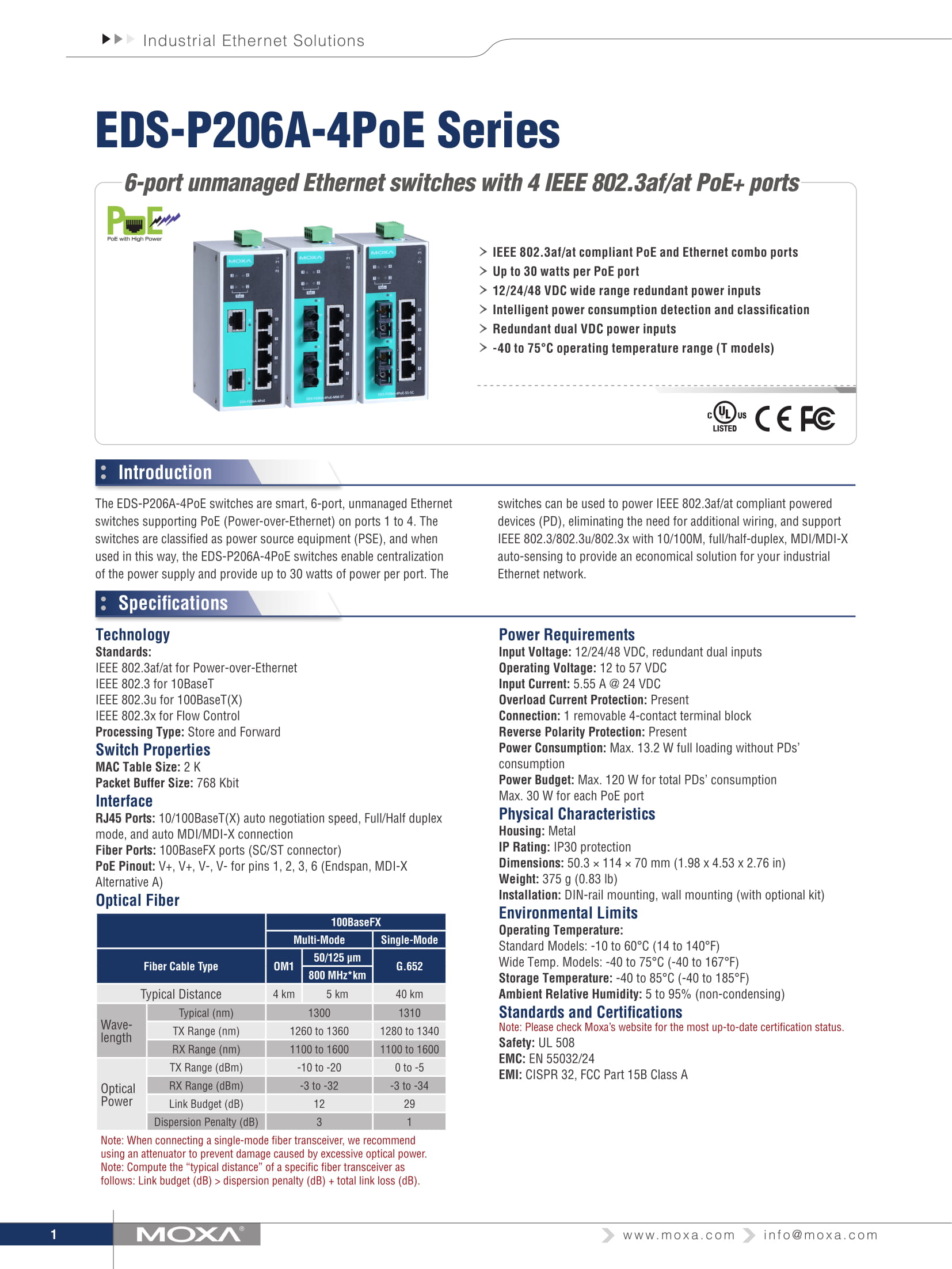 > EDS-P206A-4PoE /MOXA 목사 Unmanaged Ethernet switch with 2 10/100BaseT(X) ports, and 4 PoE ports