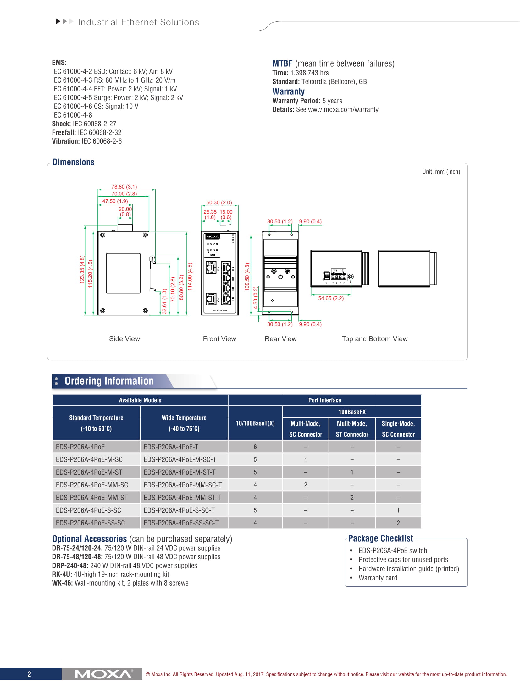 EDS-P206A-4PoE /MOXA 목사 Unmanaged Ethernet switch with 2 10/100BaseT(X) ports, and 4 PoE ports [상품번호: 2017]