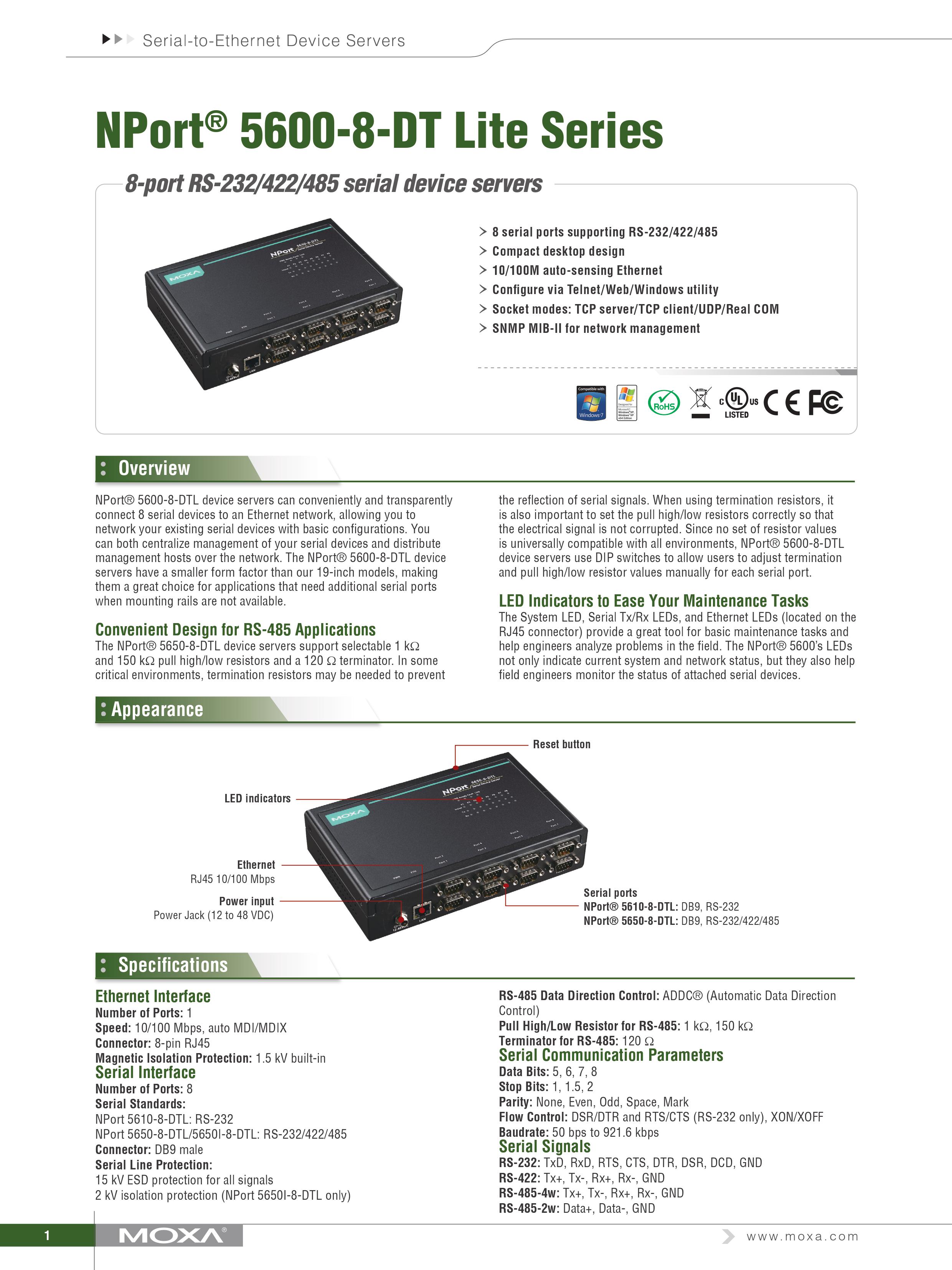 [MOXA] NPort 5650I-8-DTL-T / MOXA 목사 NPort NPort 5650I-8-DTL-T 8-port RS-232/422/485 serial device servers [상품번호: 2223]