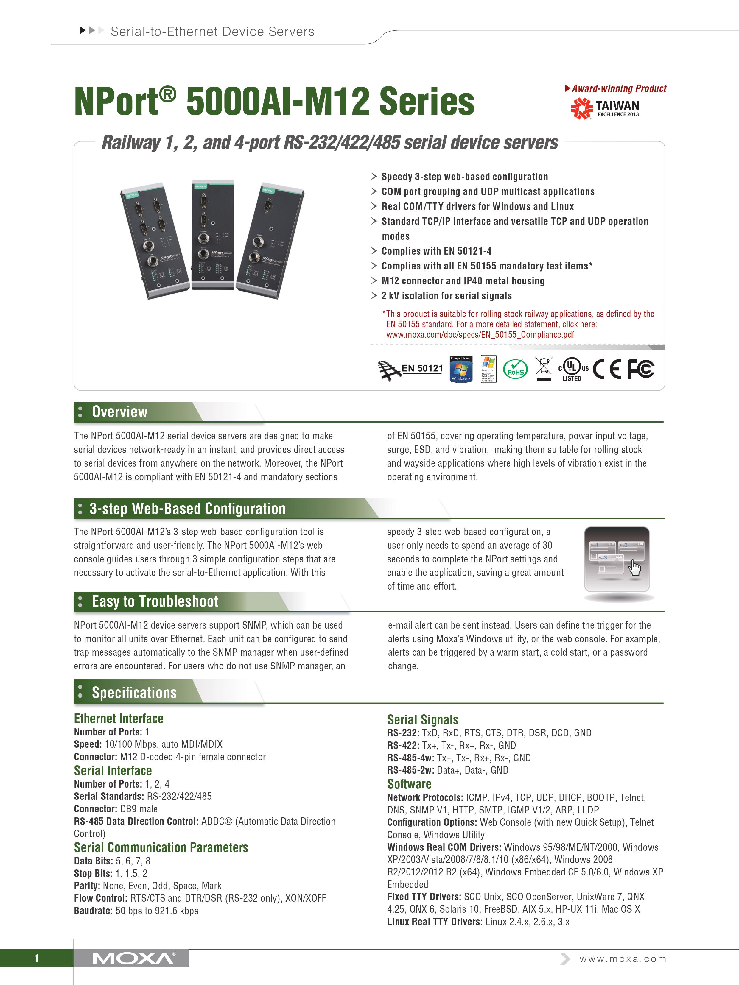 [MOXA] NPort 5250AI-M12-CT /MOXA 목사 NPort 5250AI-M12-CT Railway 1, 2, and 4-port RS-232/422/485 serial [상품번호: 2252]