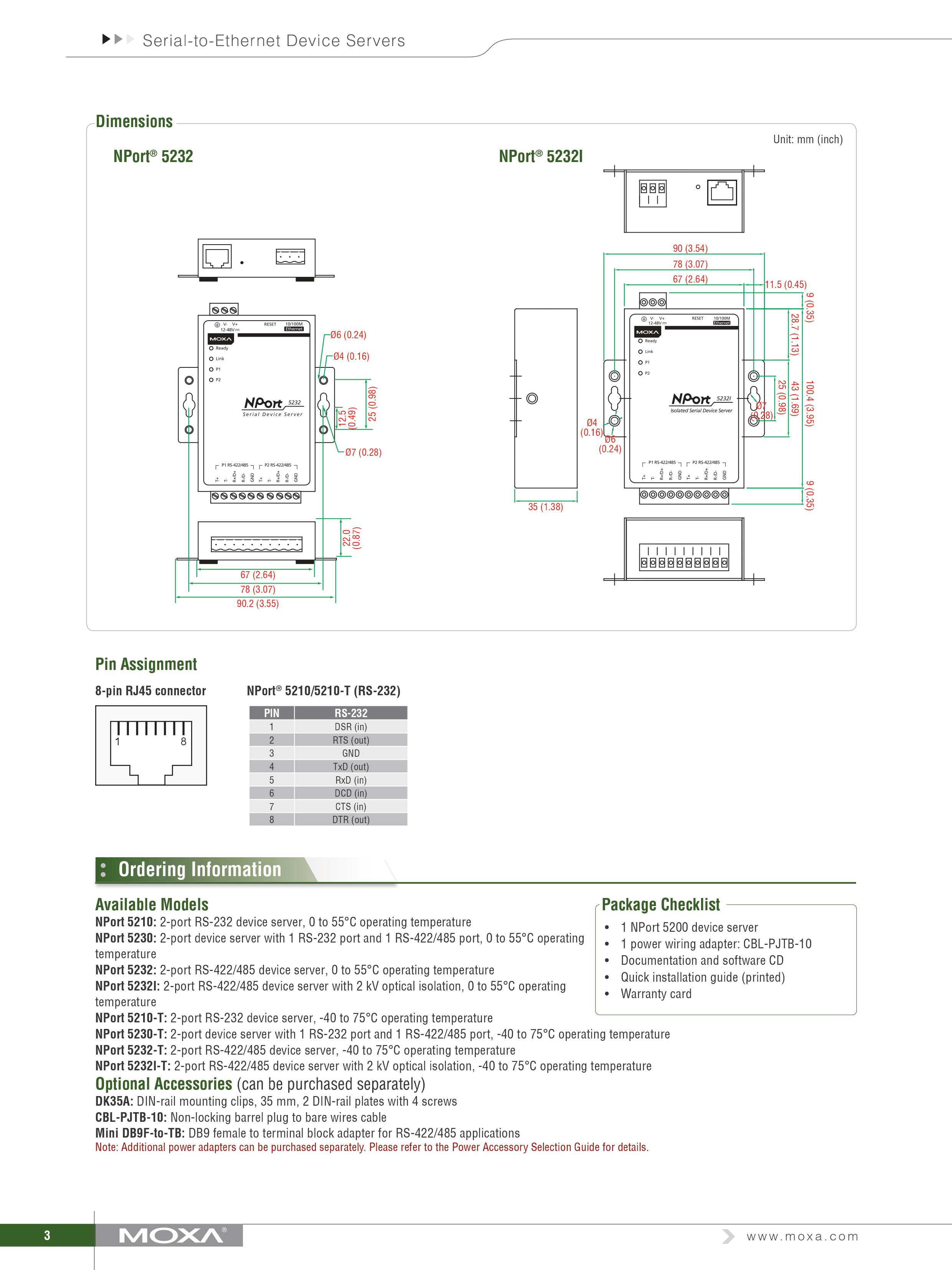 [MOXA] NPort 5232-T / MOXA 목사 NPort 5232-T 2-port RS-232/422/485 serial device servers [상품번호: 2254]
