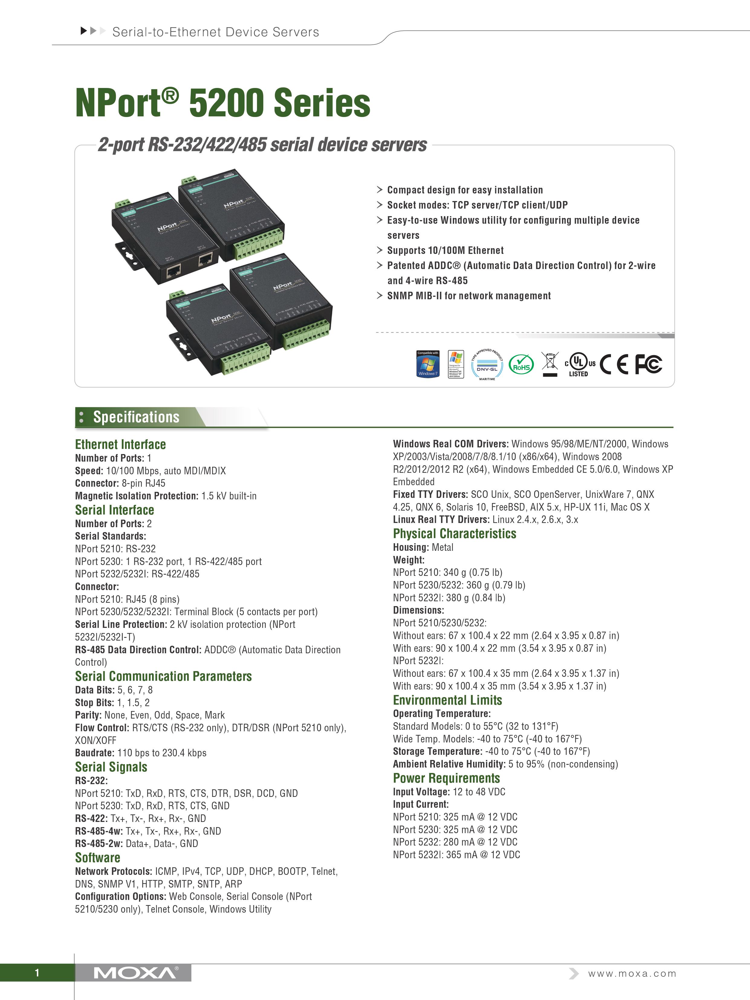 [MOXA] NPort 5232I-T / MOXA 목사 NPort 5232I-T 2-port RS-232/422/485 serial device servers [상품번호: 2255]