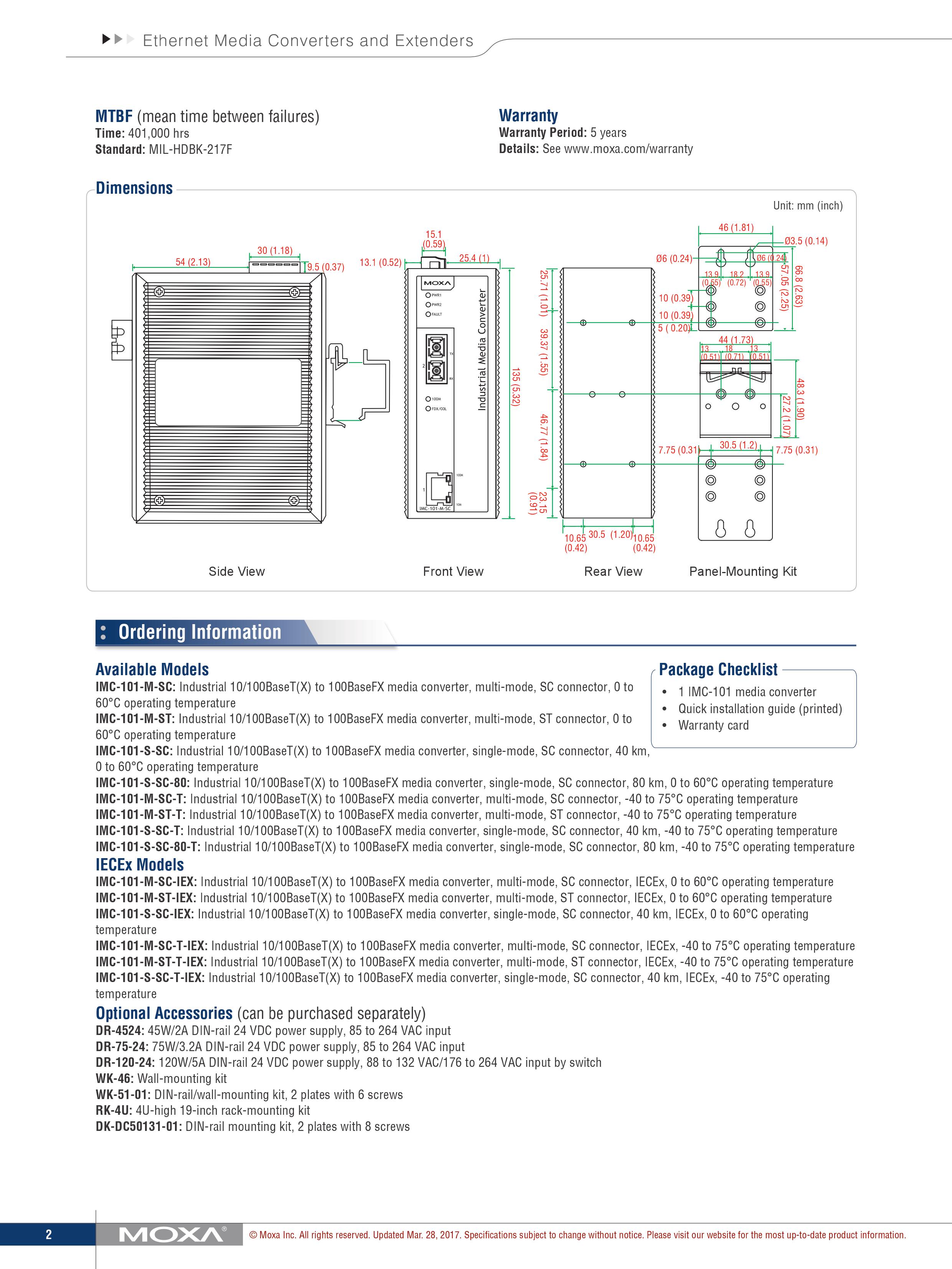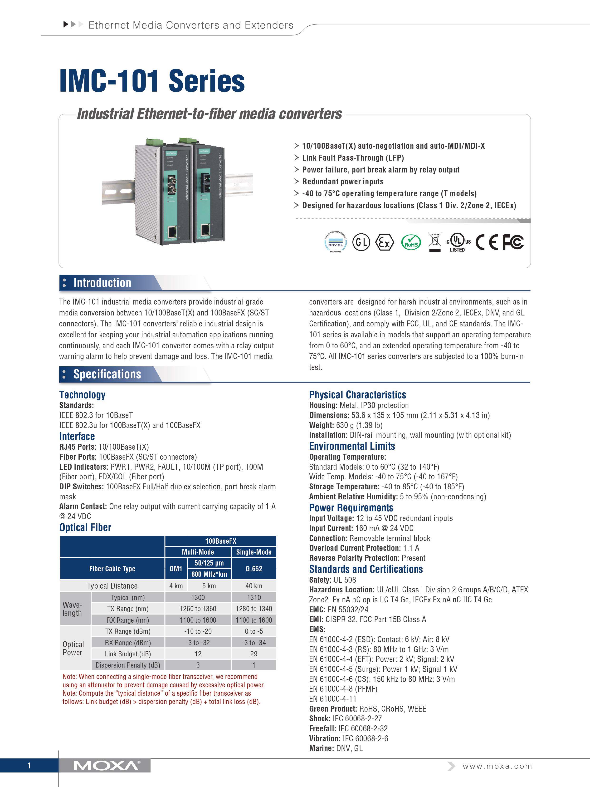 > IMC-101-S-SC-80 / MOXA 목사 IMC-101-S-SC-80 Industrial Ethernet-to-fiber media converters