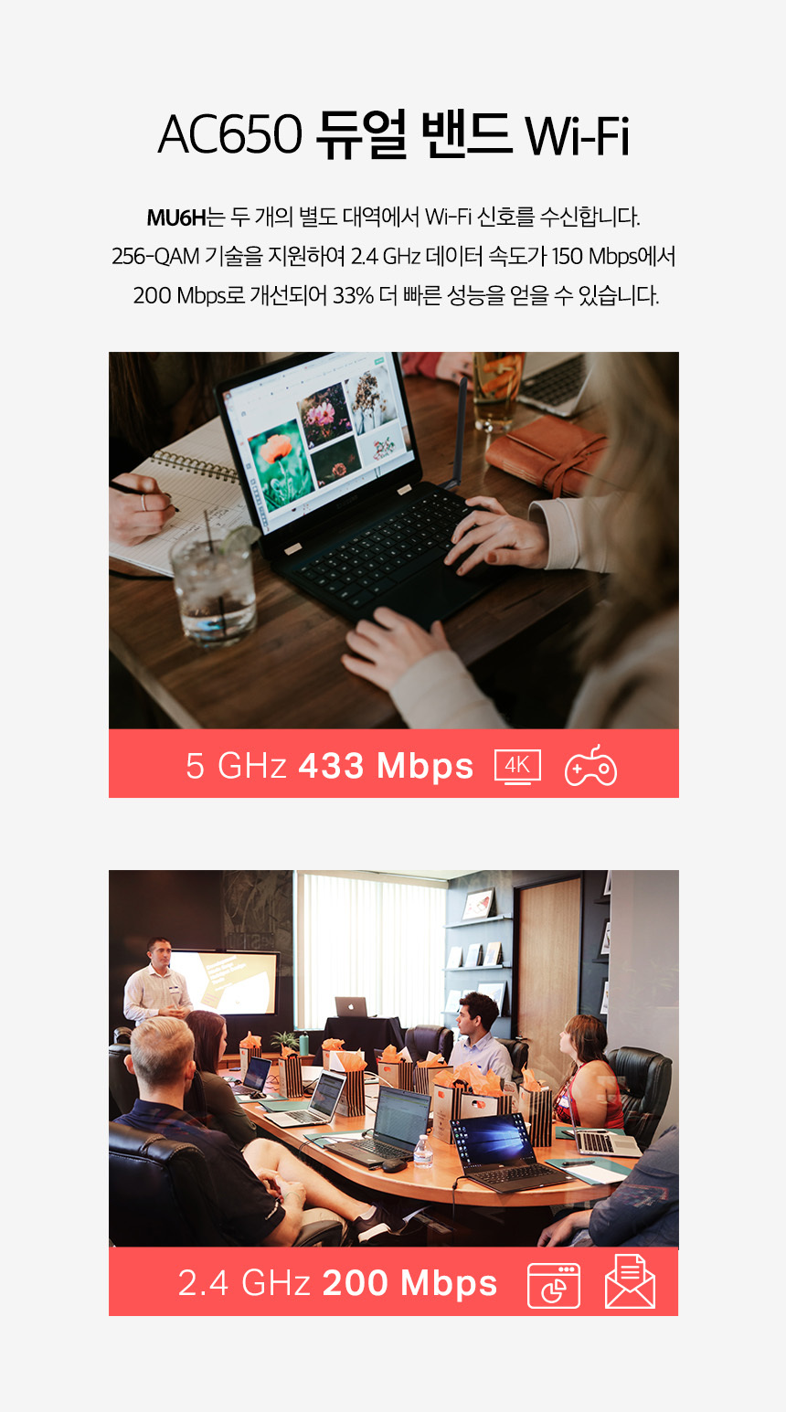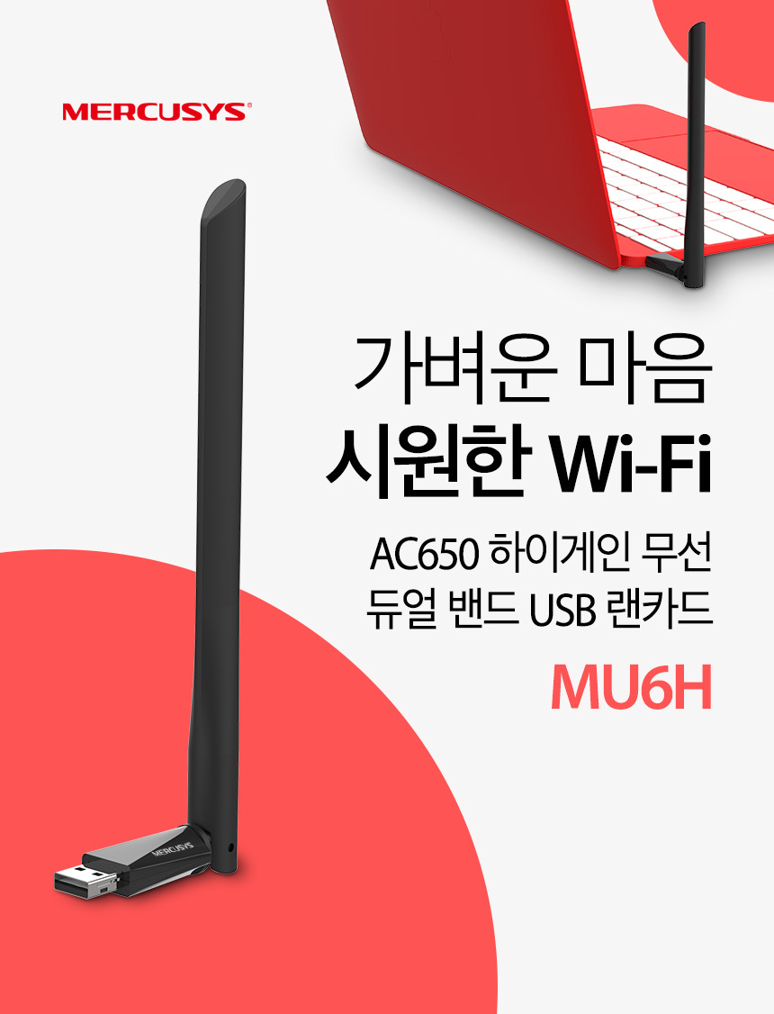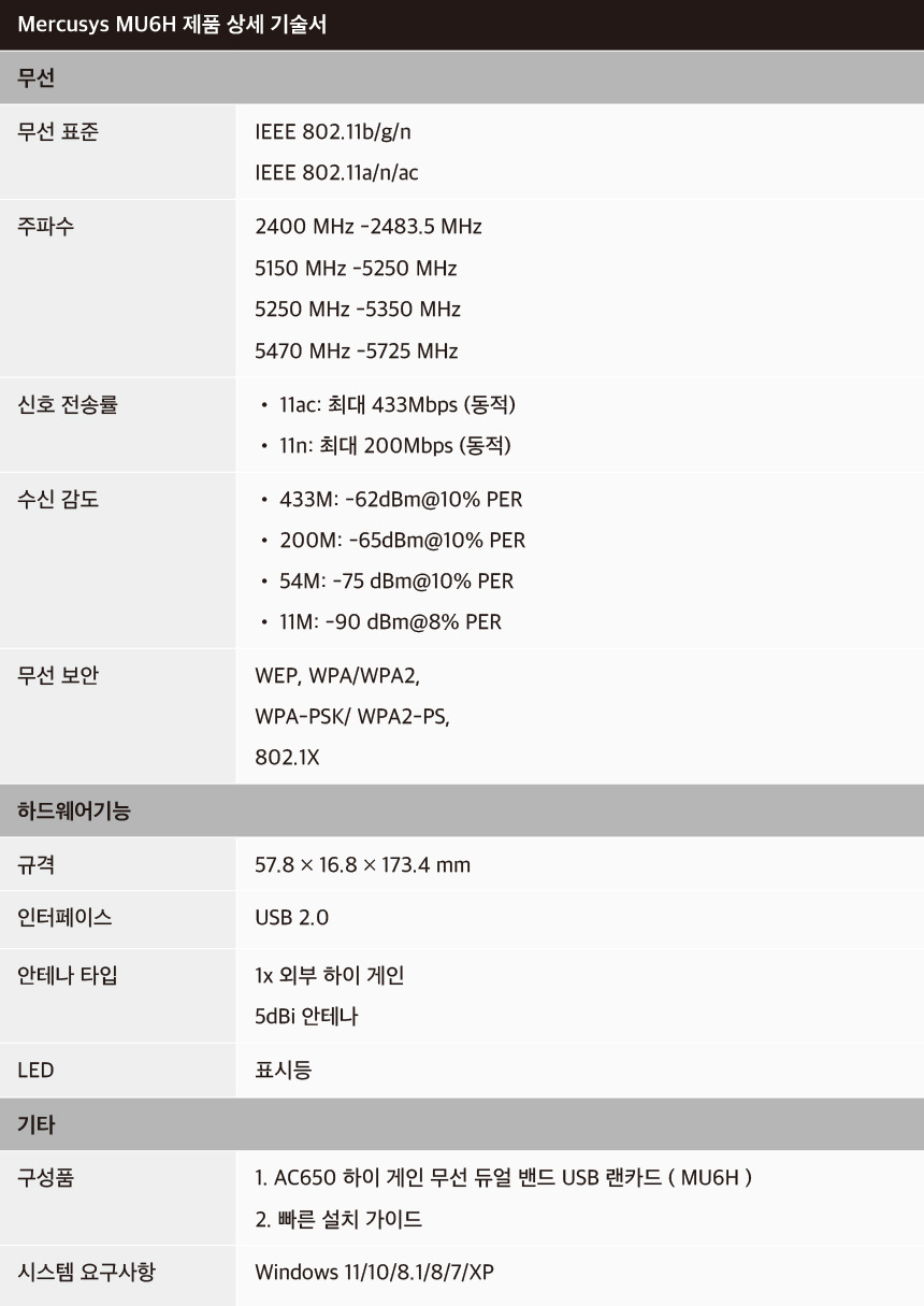 > MU6H 머큐시스 무선랜카드/USB/650Mbps 외장안테나