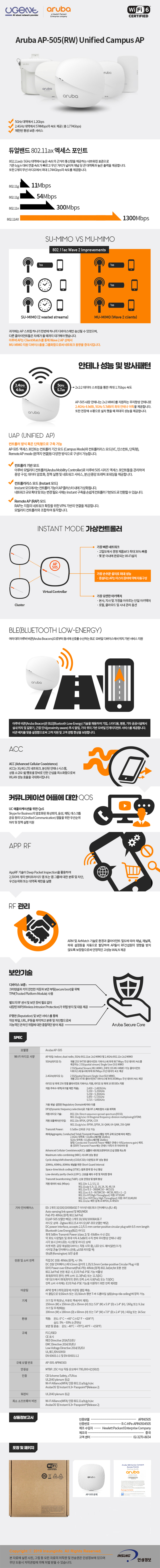 AP505 아루바 AP-505 (RW) 무선 AP R2H28A [상품번호: 2639]