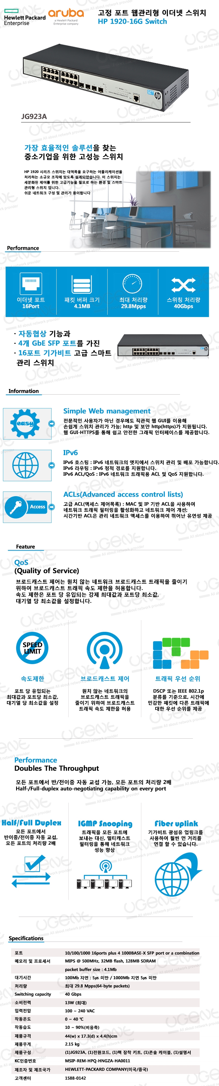 > [HP] JG923A HP 기가 16포트+4SFP 관리형