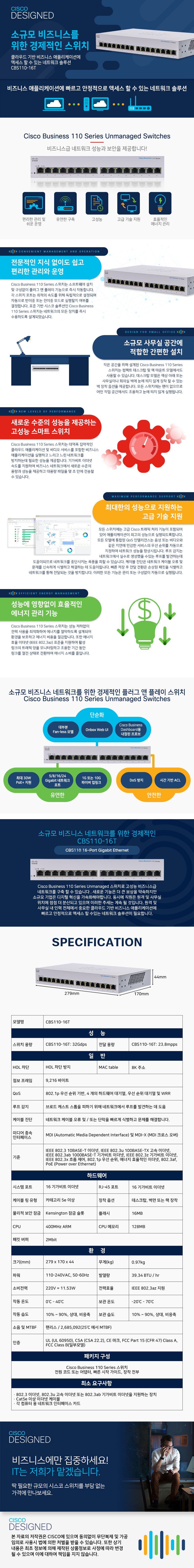 > 시스코 기가 16포트 허브 렉마운트킷 포함 CBS110-16T