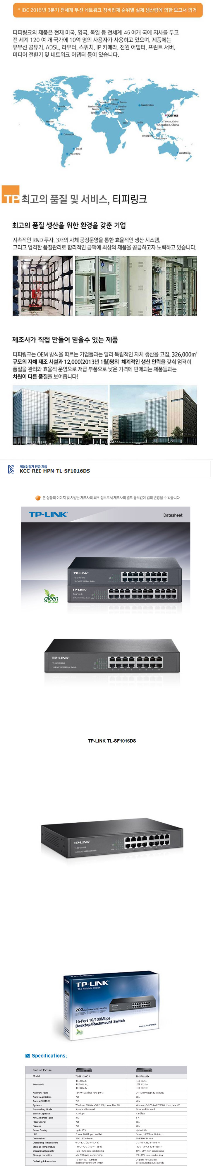 > [티피링크] 정품 TL-SF1016DS TP-LINK 100Mbps 16포트