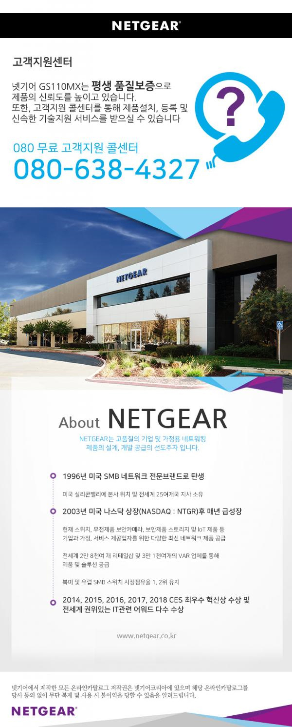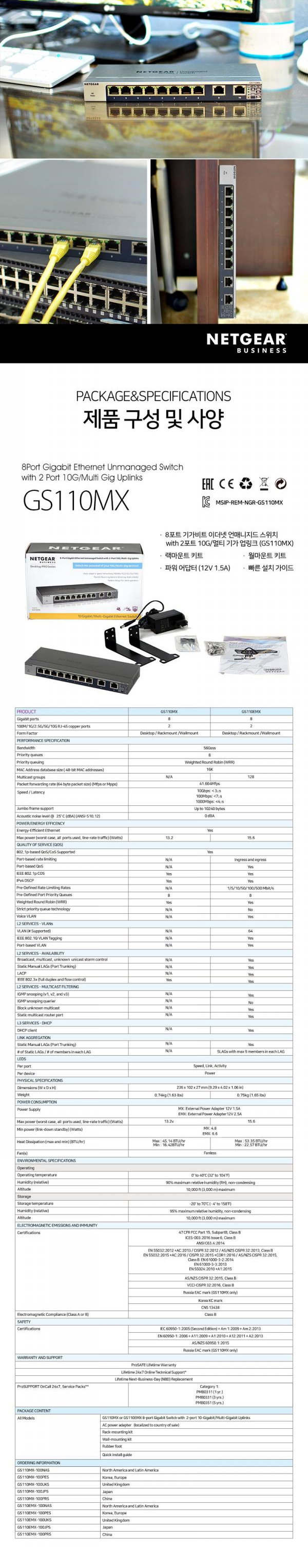 [넷기어] GS110MX 기가8포트 +10G 2포트 RJ-45 업링크 무설정 스위칭허브 [상품번호: 5996]
